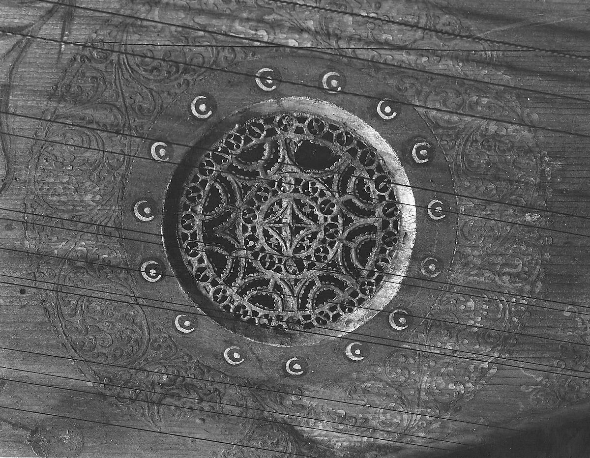 The first of these is the 1581 Hans Rucker's virginals at the Metropolitan Museum in New York. When it was acquired by the museum in 1929, two of the bass strings were of the twined type. This was captured in a photograph of the rose taken by the museum, as can be seen clearly here on the Met's web site. (The photo is upside down, so the bass strings appear on the top of the photo.) Sadly, at some point during its restoration, the strings were discarded. Associate conservator Stewart Pollens wrote extensively about these strings [Note 2], including exploration of the probability of their originality and analysis of the strings and possible reconstruction based on the photographic evidence and mathematical calculation. In Pollens' words, "The virtual absence of examples or mention of this type of string precludes its adoption from other sources and suggests that twisted bass or short-octave strings may have been originally fitted to the 1581 virginal." (90, 92).